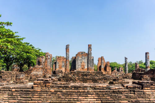 目前保存最完整的就是中間的三座佛塔,也是整個(gè)寺廟最具參觀性的地方,這三座佛塔其實(shí)是骨灰塔,里面存放著包若瑪特羅卡納國王以及他的兩個(gè)兒子的遺骸,其實(shí)就是大城王朝的一世、二世、三世。