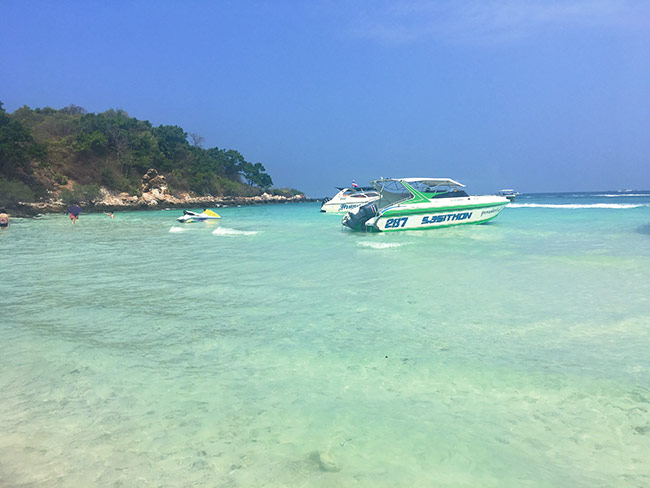 這里的水質(zhì)比號(hào)稱最好海水的芭提雅海灘還要干凈,因?yàn)槟苡醚劬ν敢曀潞脦酌?,可以看到那些有趣的魚兒在水里游啊游,在附近還有大片美麗的珊瑚,可以通過玻璃底觀光小船看海底。