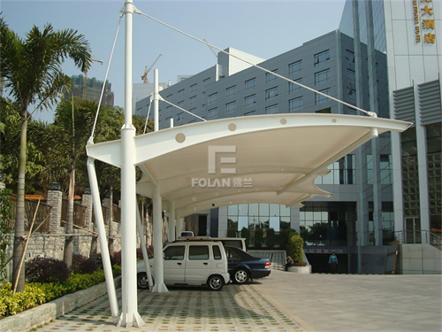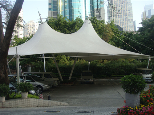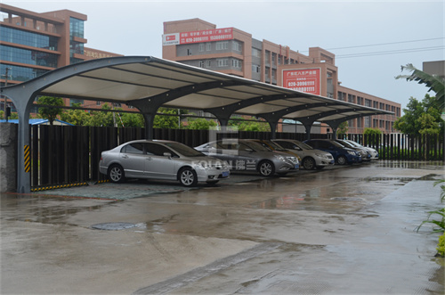 膜結構停車棚是車輛遮陽避雨的港灣,它以建筑織物,即膜材料為張拉主體,與支撐構件或拉索共同組成的結構體系,膜結構車棚憑其新穎獨特的建筑造型,良好的受力特點已成為大跨度空間結構的主要形式之一。
