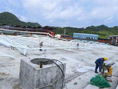 從設(shè)計(jì)圖深化-備料-鋼結(jié)構(gòu)除銹上底漆-放樣-板件激光加工-號料-組合焊接-試裝-校核尺寸-整體焊接-中間漆及面漆-吊裝-加焊與油漆修補(bǔ),再到膜的制作安裝:復(fù)測尺寸-繪制裁剪圖-膜材裁剪-膜片熱合制作-打包-運(yùn)輸-現(xiàn)場膜面展開-膜吊裝-膜安裝。一道道施工程序,你們兢兢業(yè)業(yè),配合默契,利用鋼結(jié)構(gòu)和膜材,建造了一個(gè)個(gè)曲線優(yōu)美造型獨(dú)特的膜結(jié)構(gòu)建筑。