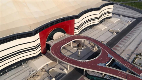 最后值得一提的是海灣球場的內(nèi)立面和天花,這里運用的是法拉利吸音膜,定制成當(dāng)?shù)氐靥侯伾?,覆蓋面積約八萬平方米,頗具當(dāng)?shù)匚幕厣?。最為震撼的是,該部分膜材是由?dāng)?shù)貗D女耗時六個月純手工編織而成,她們以薩杜圖案為特色,紀(jì)念卡塔爾傳統(tǒng)編織形式。