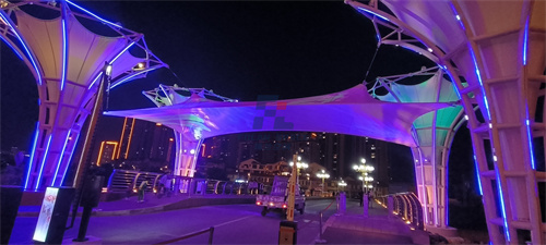 當(dāng)膜結(jié)構(gòu)與燈光相遇,空間被賦予了新的生命。光影交錯間,膜材的柔美與燈光的絢爛相互映襯,營造出如夢似幻的氛圍。無論是漫步其中,還是駐足觀賞,您都能感受到這份獨(dú)特的美學(xué)體驗。