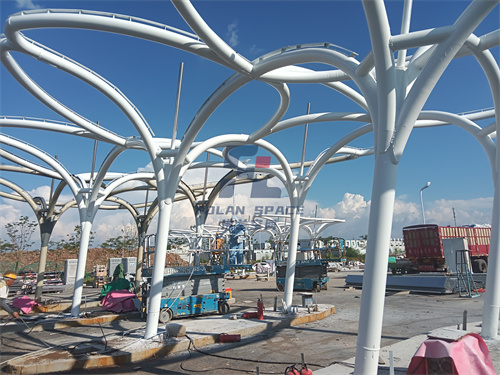 機(jī)場(chǎng)人流量巨大,結(jié)構(gòu)必須萬(wàn)無(wú)一失。所有鋼構(gòu)件的加工、安裝精度必須以毫米計(jì),確保與膜結(jié)構(gòu)張拉點(diǎn)的完美契合。