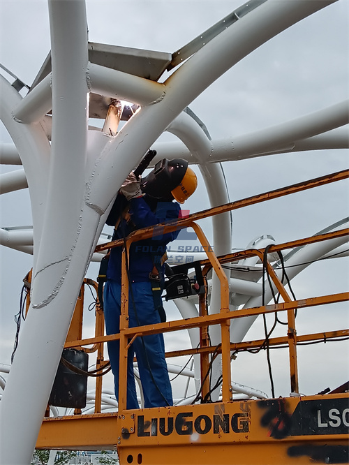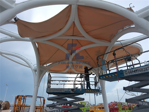 鋼結(jié)構(gòu)是膜的“骨骼”。佛蘭膜結(jié)構(gòu)采用高性能防腐涂料,經(jīng)過(guò)嚴(yán)格的表面除銹處理后,進(jìn)行多層均勻噴涂。這不僅提供了卓越的耐候性,確保了數(shù)十年不生銹,更重要的是,一個(gè)平整光滑的鋼結(jié)構(gòu)表面,是后續(xù)膜結(jié)構(gòu)張拉形成完美曲面的基礎(chǔ)。