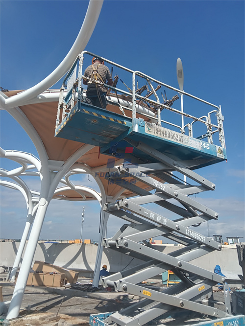 這是工程的“華彩樂(lè)章”。我們選用的膜材,具有優(yōu)異自潔、防火、高透光率及超強(qiáng)耐候等特性,極其適合機(jī)場(chǎng)這一注重安全與維護(hù)的場(chǎng)所。在張拉過(guò)程中,我們的工程師使用專用工具,通過(guò)“分批分級(jí)、對(duì)稱同步”的張拉法,精確控制每一片膜的預(yù)應(yīng)力,最終使柔性的膜材在力的作用下,形成穩(wěn)定、挺拔且光影效果極佳的雙曲拋物面。