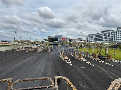 廣州白云國(guó)際機(jī)場(chǎng)三期擴(kuò)建工程是國(guó)家“十四五”規(guī)劃的重點(diǎn)工程,其新建的交通中心將是未來(lái)旅客集散的核心樞紐。因此,出入口閘機(jī)雨棚不再僅僅是功能性的遮蔽物,更是承載著城市形象與人文關(guān)懷的“第一眼印象”。佛蘭膜結(jié)構(gòu)很榮幸,能以卓越的膜結(jié)構(gòu)技術(shù),為這一國(guó)門(mén)樞紐打造既堅(jiān)實(shí)耐用又輕盈優(yōu)雅的“白云之翼”。