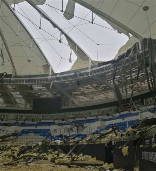 其實(shí)受臺風(fēng)暴雨影響的不僅是人員、房屋、道路、地鐵、商場、樹木等,還有膜結(jié)構(gòu)建筑。受臺風(fēng)暴雨影響,有些膜結(jié)構(gòu)建筑被臺風(fēng)撕裂掀翻,有些膜結(jié)構(gòu)屋面嚴(yán)重積水。