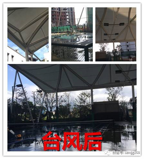 以上就是今天的分享,如您在某處已建造膜結(jié)構(gòu)建筑,在臺風(fēng)暴雨過后,請記得進(jìn)行安全檢查和膜面檢查清洗哦!