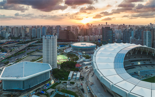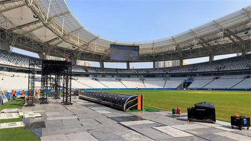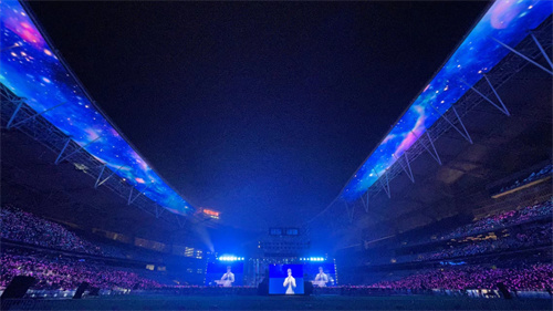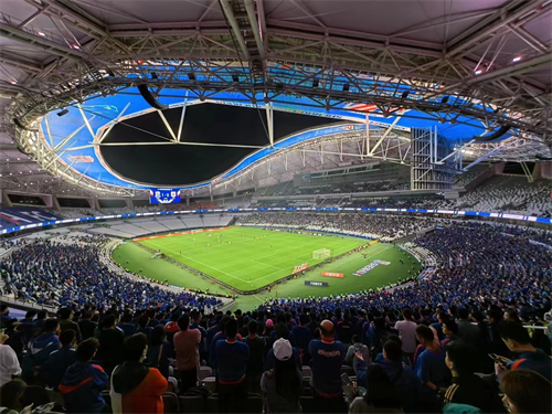 現(xiàn)場歌聲繞梁,抬頭仰望,整個會場也壯觀浪漫。最值得一提的是會場屋面鋼結(jié)構(gòu)懸挑延伸部分下掛的LED發(fā)光天幕、上覆ETFE透明膜,安裝360°環(huán)繞擴聲裝置,為賽事現(xiàn)場呈現(xiàn)出震撼的聲光電效果,帶給觀眾國際頂級賽事的沉浸觀感。