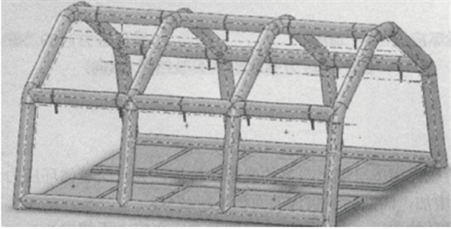 氣肋式膜結(jié)構(gòu)是一種采用高壓氣肋作為支承體系的充氣膜結(jié)構(gòu),通過將多根氣肋連接成整體的方式創(chuàng)造出使用空間,具有輕質(zhì)便攜、可快速運(yùn)輸、低耗能、安全可靠等優(yōu)點(diǎn)。