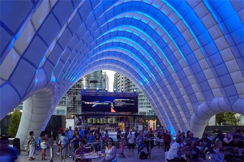 它們完全由膜結(jié)構(gòu)組成,不含鋼結(jié)構(gòu),充分利用可充氣結(jié)構(gòu)的極限。在38天的運(yùn)動(dòng)會(huì)期間,展館舉辦了500多場現(xiàn)場表演和演講,吸引了超過40萬的參觀者。