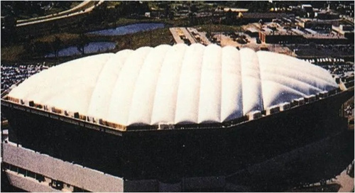 美國密歇根州龐蒂亞克銀頂體育館,曾是世界最大氣承式穹頂,跨度達168米,1975年建成,2017年拆除。