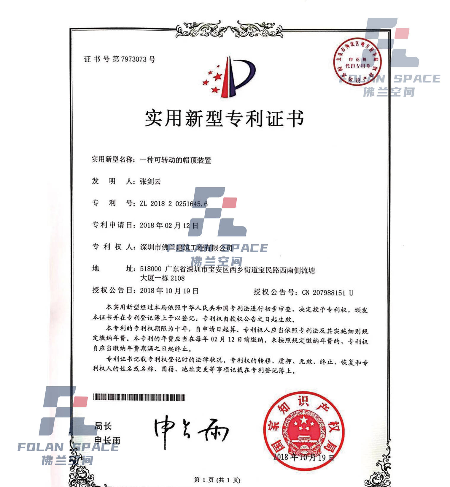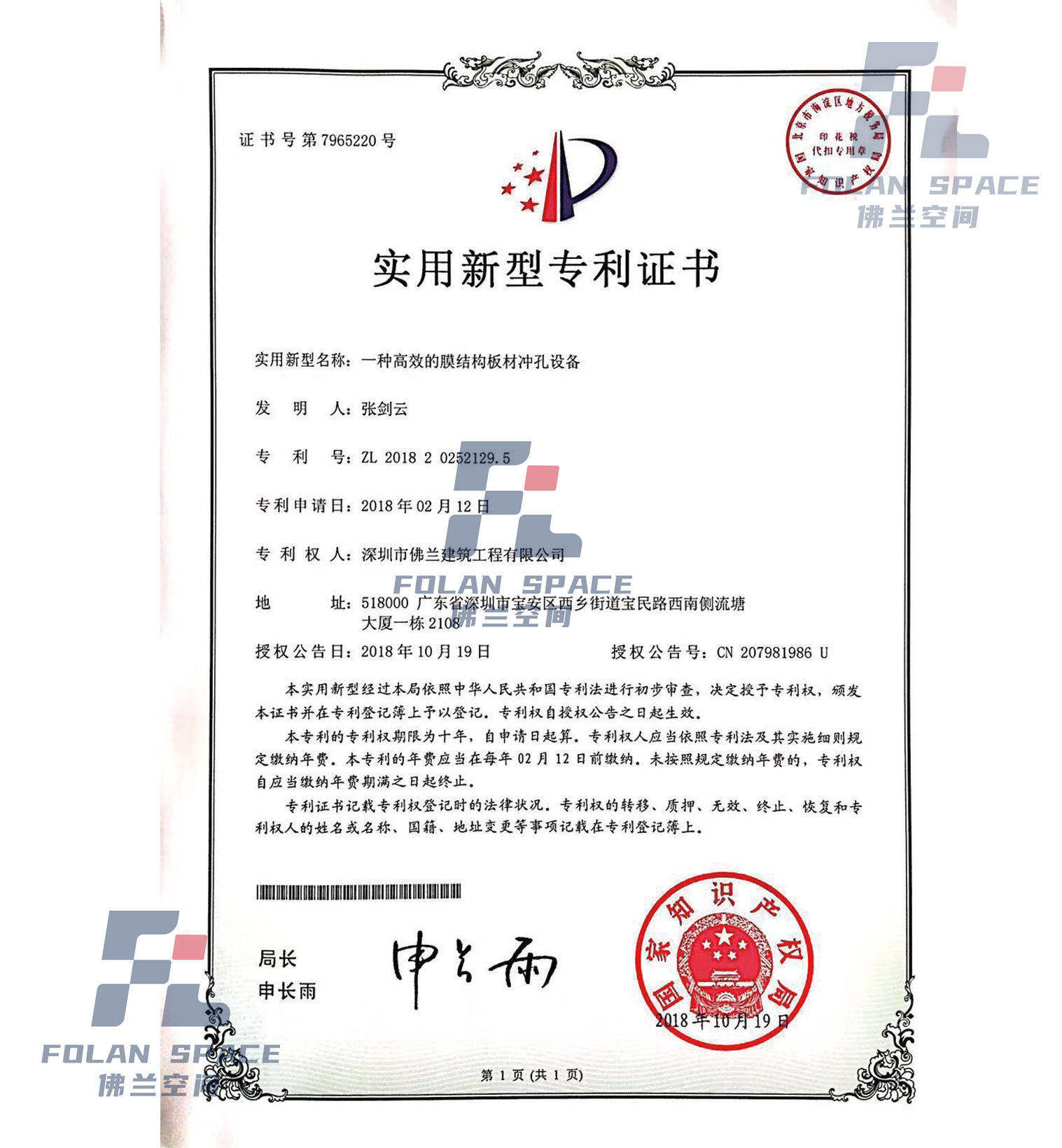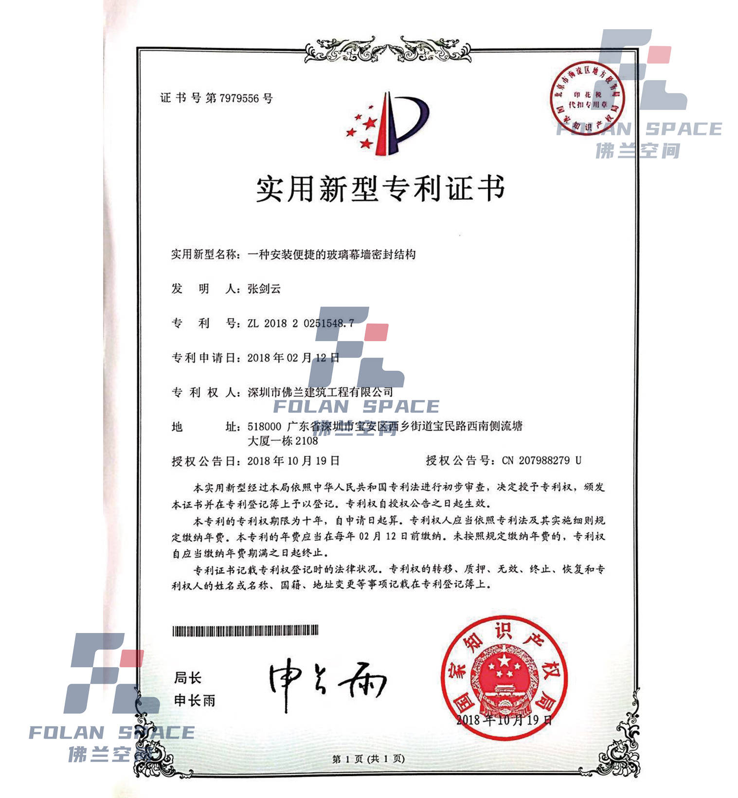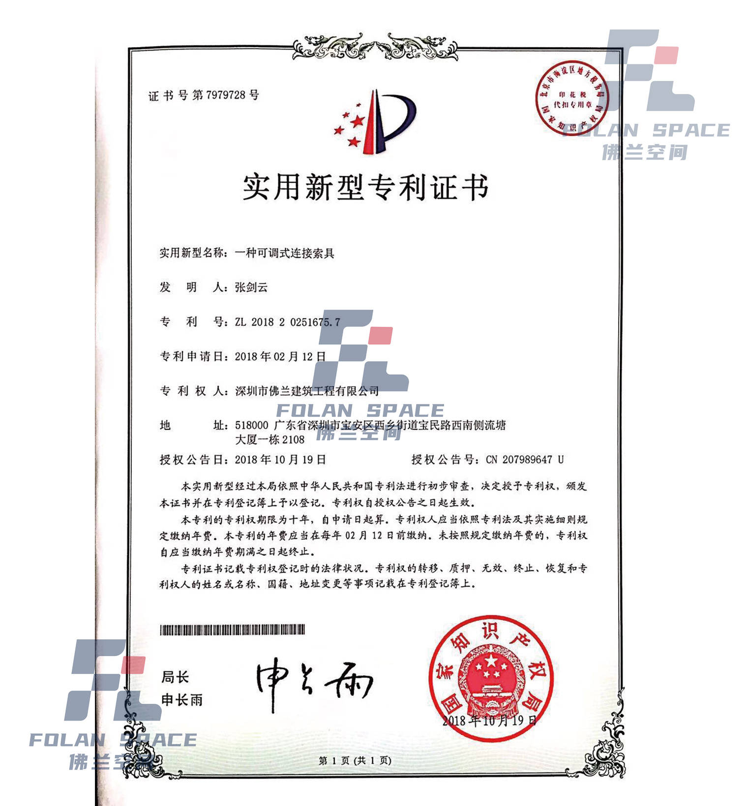 實用新型專利證書