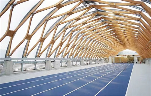 新豐洲跑步館是日本第一家使用ETFE薄膜的體育場館,與其搭配的結(jié)構(gòu)支撐材料除了常用的合金框架外,還使用了松木框架。這使得整個(gè)建筑有更親人的感官體驗(yàn),同時(shí)還提高建筑的輕盈感。