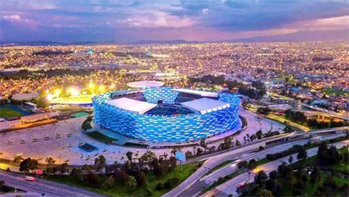 夸烏特莫克體育場,墨西哥第四大足球場。體育場作為墨西哥紡織設(shè)計(jì)和運(yùn)動(dòng)建筑領(lǐng)域的創(chuàng)新,是拉丁美洲第一個(gè)也是唯一一個(gè)外墻完全被ETFE覆蓋的體育場。