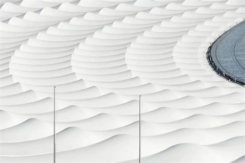體育場屋頂由兩個鋼筋結(jié)構(gòu)的薄片板對接而成的,每個都有31000平方米的面積。上邊的薄片由76個部分組成,一共有1158片玻璃,每片都重達200公斤,這些玻璃是這個屋頂?shù)淖詈蠼M成部分,這個屋頂自身就有20層建筑保護。