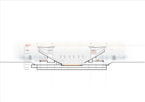 設(shè)計(jì)方案覆蓋現(xiàn)有看臺(tái),并向兩側(cè)懸挑。折疊開合式屋頂一部分由高密度建筑膜材構(gòu)成,其固定部分的結(jié)構(gòu)構(gòu)件則提供展開和移動(dòng)所需的支撐。所有構(gòu)件的設(shè)計(jì)均出于力學(xué)考慮,并不作為裝飾使用。