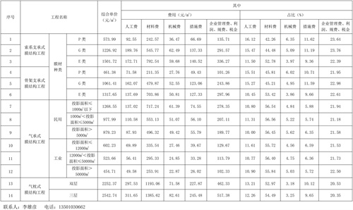四、關(guān)于材料價格,本指標(biāo)中G類、P類膜材及其他材料均考慮為國產(chǎn)合格產(chǎn)品,而E類膜材則按進口合格產(chǎn)品考慮。