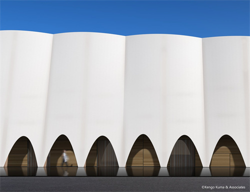 外立面的鏤空木結(jié)構(gòu)致敬日本細(xì)木拼接工藝,白色織物隨風(fēng)輕揚(yáng),既似阿拉伯商船的帆,又像覆蓋在建筑上的“面紗”,在陽光下投射出流動(dòng)的光影,宛如一首寫在海風(fēng)中的詩。