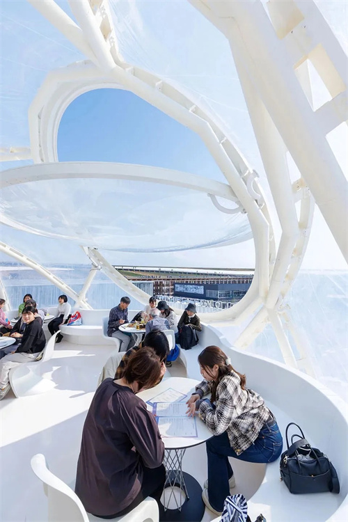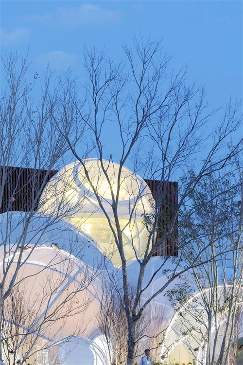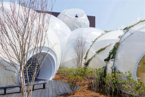 瑞士館的設(shè)計(jì)靈感源自于自然,旨在展示人類與自然和諧共存的美好愿景。整個展館由五個PVC與ETFE構(gòu)成的雙層膜結(jié)構(gòu)充氣輕質(zhì)球體組成,這些球體相互連接,仿佛是大自然中的一顆顆珍珠,被巧妙地嵌入了一片綠意盎然之中。這種設(shè)計(jì)不僅美觀大方,更體現(xiàn)了瑞士對于環(huán)保和可持續(xù)發(fā)展的深刻理解。