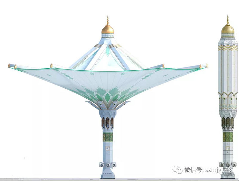 另外在沙特的吉達機場,也設(shè)計了兩把方形遮陽傘。