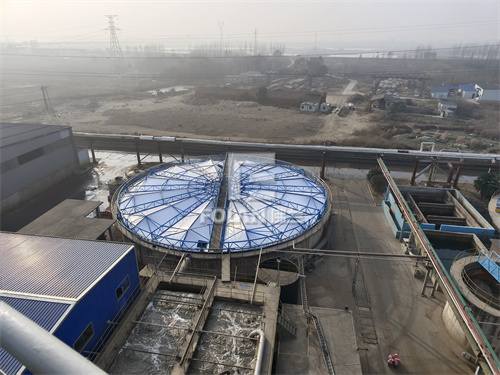 竣工后的污水池,呈扁平圓錐形,結構輕盈。白色的膜材,藍色的鋼構,大跨度空間膜結構污水池加蓋,既美觀大氣,又能幫助凈化廢氣保護環(huán)境。