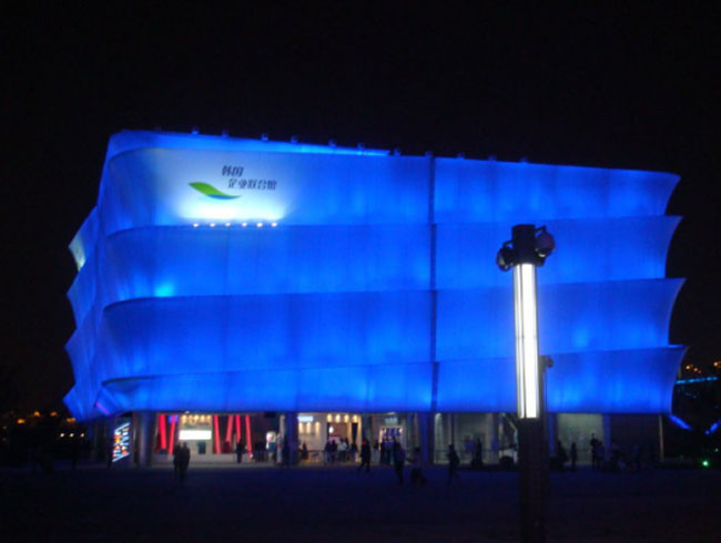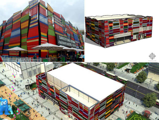 以我們都很熟悉的上海世博會(huì)幾個(gè)場館為例,展廳主體采用舊廠房或廢棄集裝箱改造,外觀則通過鋼架包裹膜結(jié)構(gòu)完成整體施工,既節(jié)約了工期,又一改廢舊廠房古板、沉悶的外觀造型。如下圖,就是幾個(gè)世博園里的展館: