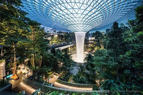 星耀樟宜機場(Jewel)是一個世界級多面相生活方式的據(jù)點,由花園和景點、零售和餐飲、酒店以及機場運營設(shè)施等眾多項目組成。它擁有標(biāo)志性的玻璃和鋼結(jié)構(gòu)外墻,總建筑面積達135,700平方米,是世界最大室內(nèi)瀑布與穹頂氣枕結(jié)構(gòu),營造熱帶雨林氛圍。