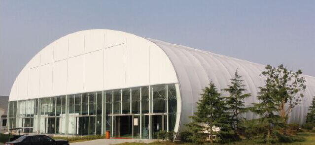 膜結(jié)構(gòu)建筑:采用高強(qiáng)度聚酯纖維編織、表面涂有高強(qiáng)自潔性涂層的建筑膜材,在鋼結(jié)構(gòu)、鋼索或充氣結(jié)構(gòu)作用下成型。具有審批快、造價(jià)低廉,節(jié)約投資;氣密性好,保溫隔熱;防火阻燃、大跨度,大空間;結(jié)構(gòu)簡(jiǎn)單,施工周期短;環(huán)保;使用壽命15年以上等特點(diǎn)。