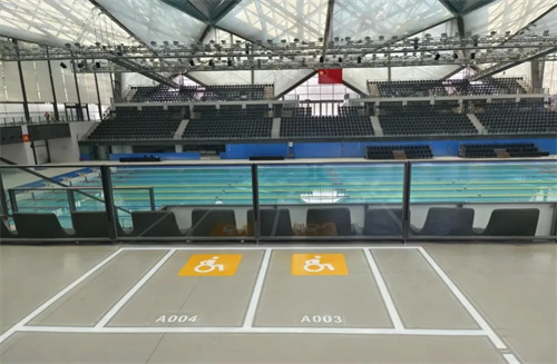 改造后,游泳場館增加無障礙座椅席位,滿足殘?zhí)貖W會觀眾觀賽要求。